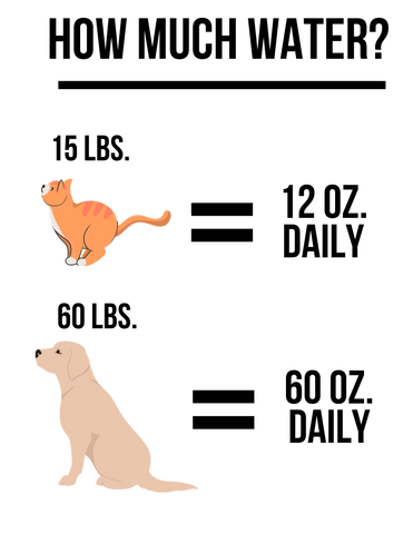 Dehydration is one of the leading causes of urinary tract problems in pets. It's important to ensure your pets have access to fresh water at all times, and that they're drinking enough of it. It is recommended that dogs drink one ounce of water per pound of body weight daily. Cats, on the other hand, are recommended to drink 4 ounces of water per 5 pounds of body weight daily.