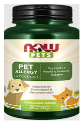 NOW® Pets Pet Allergy Supplement is designed for pet owners seeking natural relief for their allergic dogs. It’s a combination of natural components like quercetin, nettle leaf, turmeric root extract, bromelain, and burdock root.
