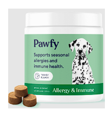 Pawfy Allergy & Immune Soft Chews are a turkey-flavored supplement formulated for dogs with allergies. These chews can help with the overactive immune response and soothe the dog’s skin and coat.