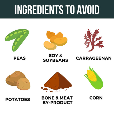 As previously mentioned, pet foods with filler ingredients should be avoided. But there are also several ingredients that, although high in protein, can be digestive irritants for your dog or cat. This includes meat and bone by-product (meal), soy, plant protein, and carrageenan. These ingredients are lower quality, highly processed, and can cause health problems in your pet. To learn more, check out our blog, here. Always opt for a recipe that is free from these common ingredients - your pet will thank you.