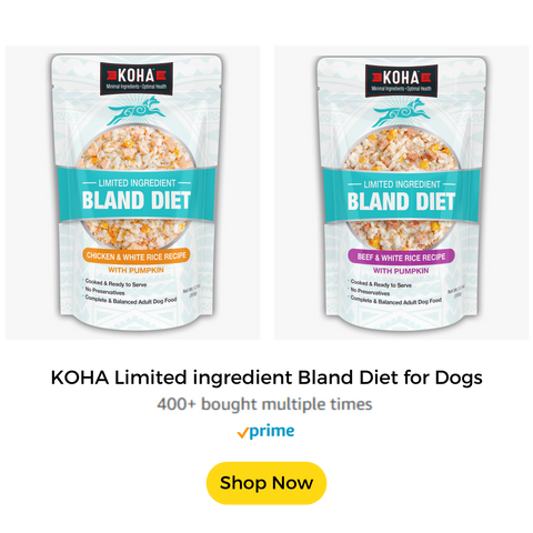 KOHA offers Limited Ingredient Bland Diet options specifically formulated to address these issues. Their Limited Ingredient Bland Diet range is ideal for dogs struggling with loose stool, diarrhea, and upset stomach.Â
